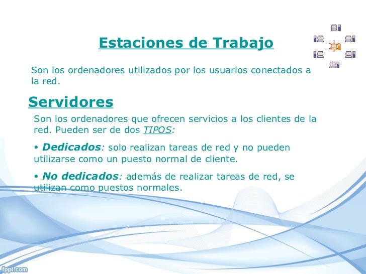 - Un ordenador que suministra un servicio a una red (archivos, hardware o software)